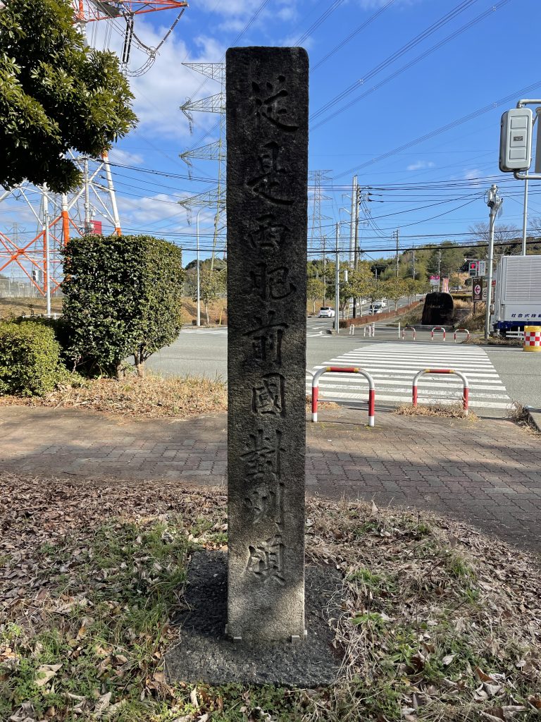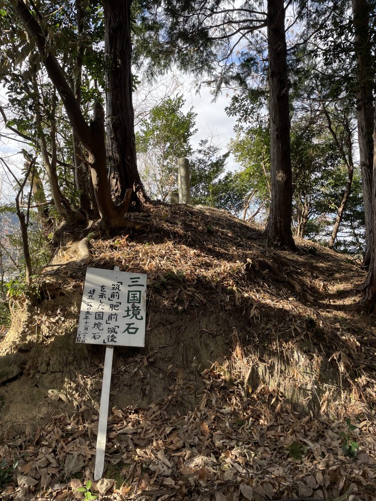 今回訪れたのは長崎街道の原田宿から田代宿へ向かう際に、最初に越えなければならなかった険しい峠道、三国坂です。その名が示す通り、三国坂は筑前・筑後・肥前の国境に位置しており、江戸時代に国境石が建てられました。そして当時の境界線は今もほぼ変わることなく、3つの市・町(筑紫野市・小郡市・基山町)の境界であり続けています。車で国道3号線を走っていれば、福岡県から佐賀県へ入ったとナビが教えてくれる所であり、江戸時代に長崎街道を歩いた人々は筑前から肥前へ入ったと国境石を見て知ったことでしょう。