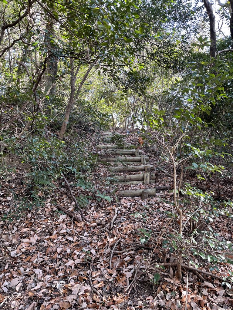 さらに南へ進むと筑後側傍石があります。「從是南東筑後国」「御原郡三澤村」と刻まれています。近くにはアマンディへ続く階段がありました。以前の見学通路でしょう。辿ってみましたが先述の通り道は消滅しています。